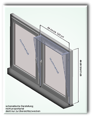 | Fensterhöhe von / bis : | Fensterbreite von / bis nach Länge Obergitter: |
