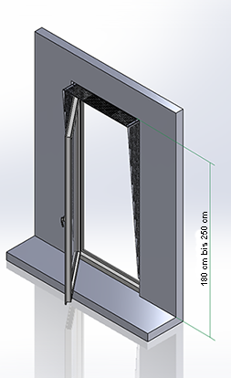 Die minimalste Höhe zwischen Fenstersturz und Fensterbank/Boden ist 199 cm, die maximale Höhe 270 cm.
